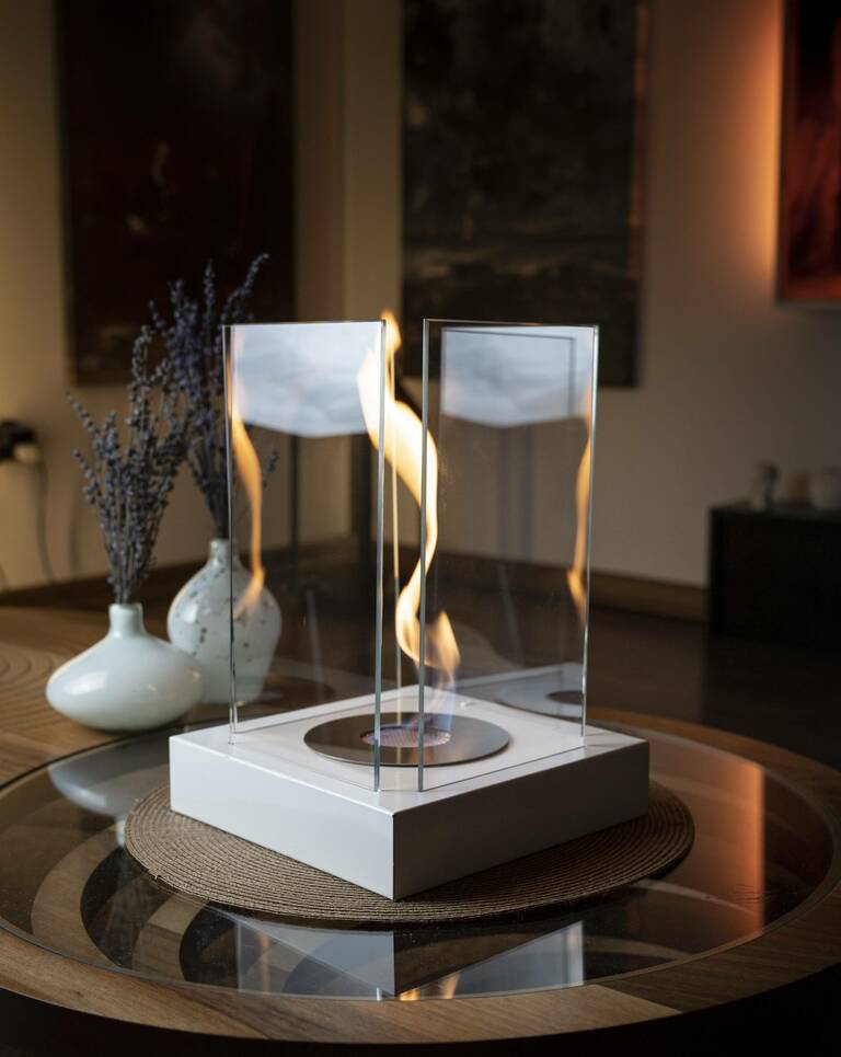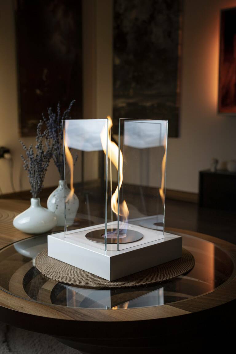 Unsere Kamine wurden mit der einzigartigen Harmonie von Metall und Glas entworfen und sind so konzipiert, dass sie in jeder Ecke Ihres modernen Zuhauses verwendet werden können. Unsere Bioethanol-Kamine erzeugen keine umweltbelastenden Faktoren wie Geruch, Rauch, Asche, Ruß. Es bietet Ihnen ein völlig natürliches Flammenvergnügen. Es wird das Lieblingsprodukt Ihres modernen und luxuriösen Zuhauses sein.